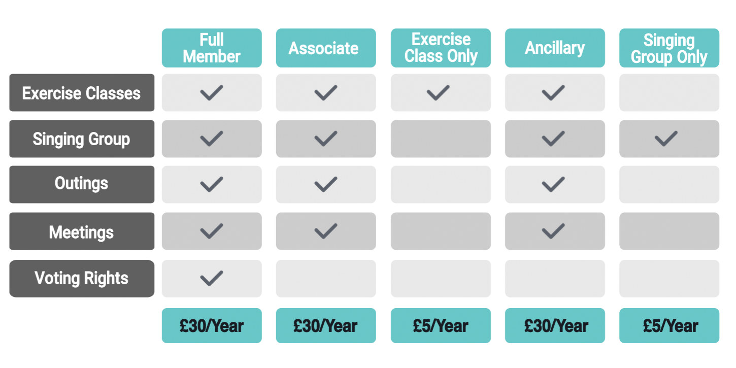 See Exercise Classes and Singing page for session fees.